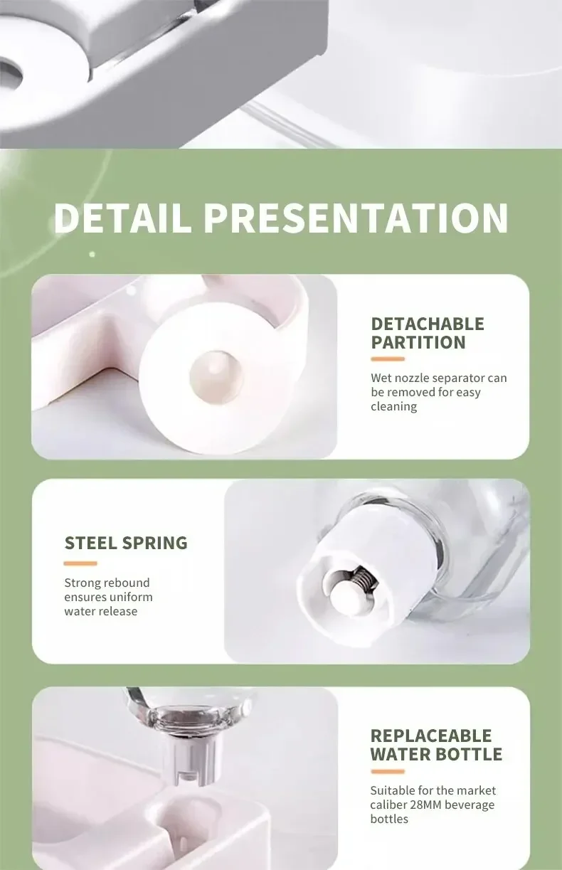 Il set doppia ciotola con dispenser d’acqua è perfetto per garantire al tuo amico a quattro zampe cibo e acqua sempre freschi e puliti.